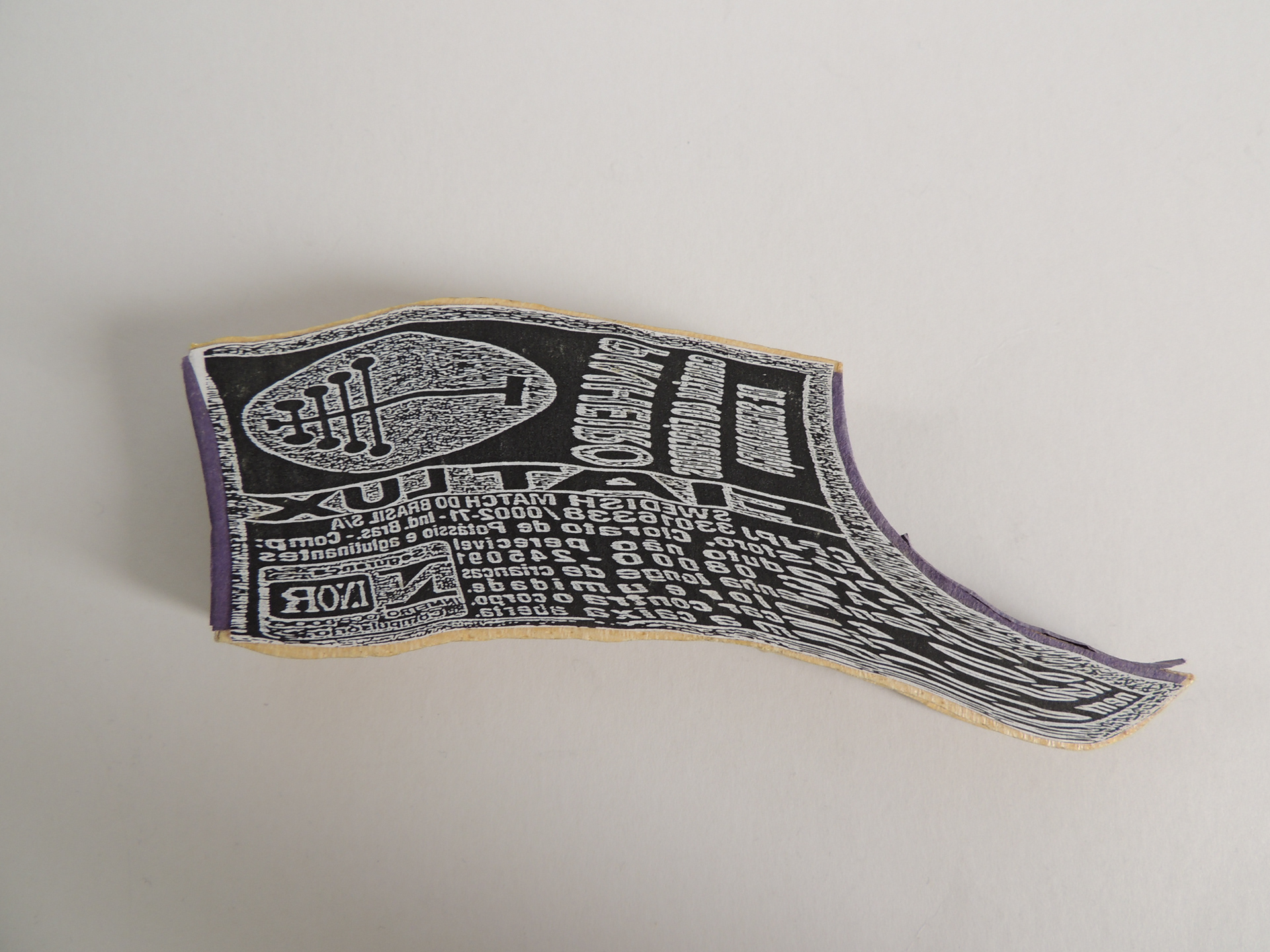 Objetos construídos em madeira e papel a partir da distorção do rótulo original em Xerox